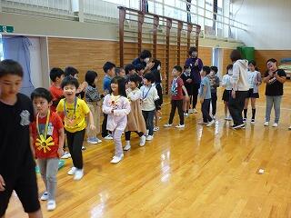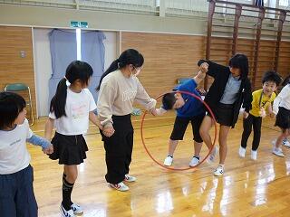 1年生は,会が始まった頃には緊張の表情でしたが,「猛獣狩り」や「フラフープ渡し」など交流のゲームが進んでいくと,すっかり緊張もとけ,にっこり笑顔全開でした。