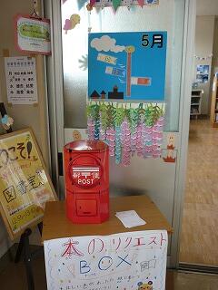5月1日(水)5月になり,図書室入口の飾りが「花」から「こいのぼり」に替わっていました。