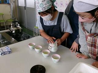 5月8日(水)5年生が家庭科でお茶の入れ方を学びました。おいしく入れるためにお湯の温度に気をつけたり,茶椀へのつぎかたの順番を工夫したりしました。