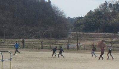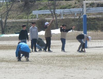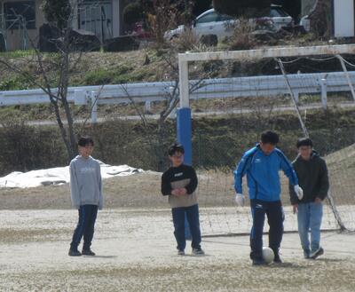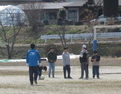 春の日差しの中,普通に子ども達とサッカーをする本校教頭でした。