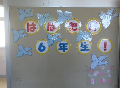 今朝,卒業生を向かえた,6学年教室の朝板です。