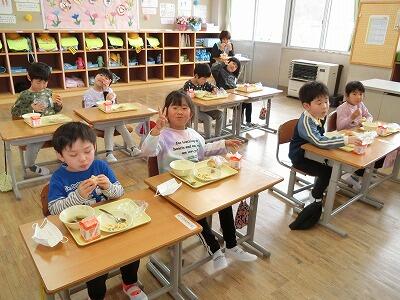 1年生は「給食,おいしいよ!」と大喜びでした。