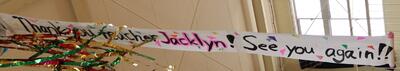 16人で,「45人分のありがとうの気持ち」をジャクリン先生に届けました。