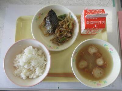 麦ご飯・ホッケの塩焼き・根菜炒め・仙台麩の味噌汁・牛乳,です!