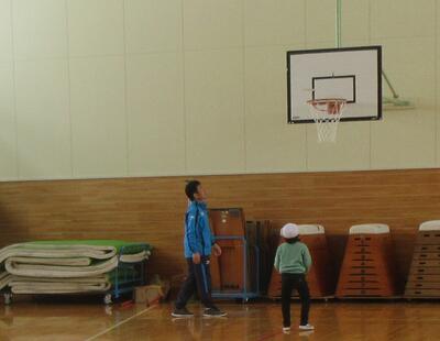 共にバスケットをする(安全確保・非常時対応のためです)のは,なんと本校教頭!