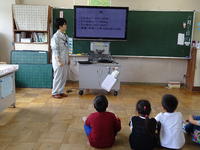 25日、1・2年生が生活科の学習で、「動物ふれあい教室」