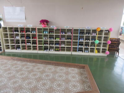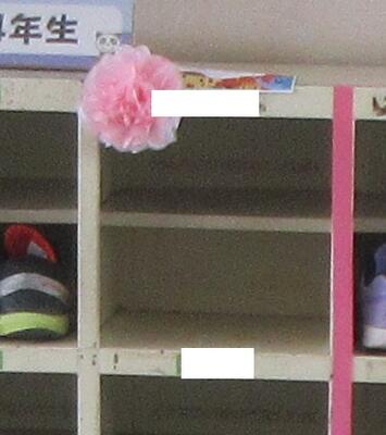 そして,下足入れには,「わかりやすいように。少しでも緊張がおさまるように。」との配慮で,花とメッセージがあったのです。