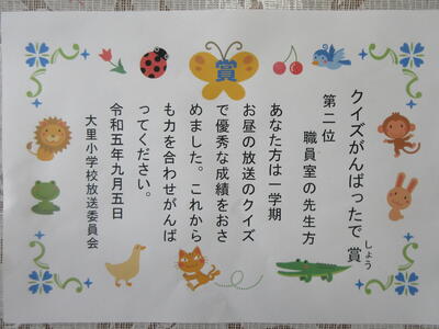 6月16日に紹介した,放送委員会による「大里クイズ・ハンターチャンス」です。
