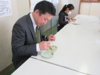 豆つかみ大会が実施されました。箸の正しい持ち方が啓蒙するのがねらいです。先生方