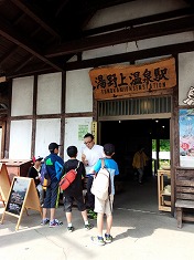 2015年5月28日 17時00分 6年生が会津へ修学旅行へ出かけました!1日目は班ごとに会津のまちへ自主研修へ行きました。湯野上温泉駅からスタートし、電車に乗って各班の目的地へ向かいます。足湯に入ったり赤べこの絵付け体験をしたりして楽しく活動できました!事前にバッチリ計画を立てていたので、スムーズに進めることができました。さすが6年生です!!