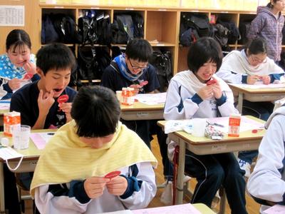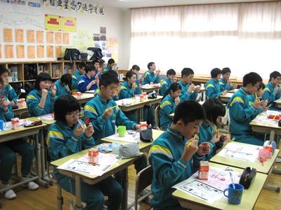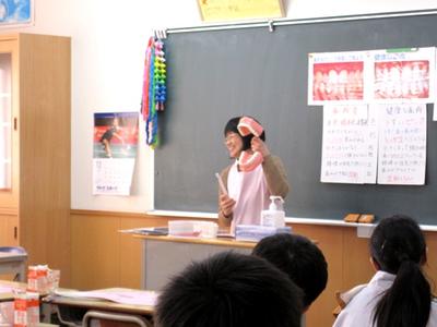 歯科衛生士さん2名を外部講師としてお招きし,1組と2組それぞれの教室で,正しい歯の磨き方を学びました。