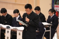 議長選出に続き,議事では,生徒会年間活動方針・活動計画,専門委員会年間活動計画,部活動年間活動計画,生徒会会計決算報告,予算案等の提案がありました。