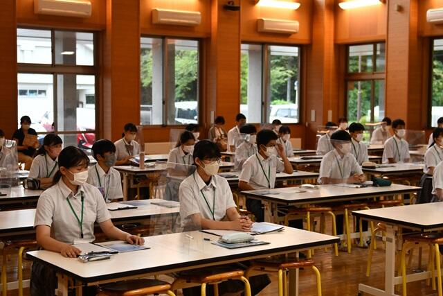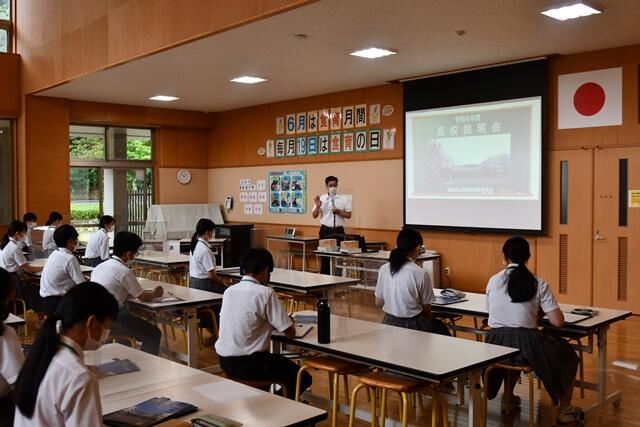 9月8日(木)、9日(金)に、3年生と保護者を対象に、県立高校7校と私立高校4校による高校説明会を実施しました。それぞれの高校の特色や入試方法などについて詳しく説明していただき、今後の進路を考えていく上で、大変貴重な機会となりました。