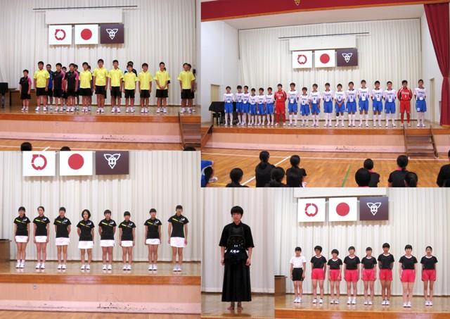 今回の壮行会も,吹奏楽部のみなさんの演奏で選手が気合いの入った応援団が,全校生徒をリードし,元気な声が体育館に響きました。各部の部長さんの挨拶も大きな声で立派に行うことができました。