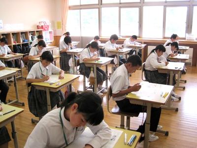 1年生は,初めての定期テストでした。(写真は1年2組の様子)