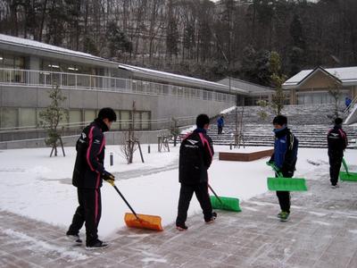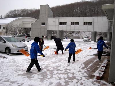 毎朝,早朝練習に取り組んでいる特設駅伝部員のみなさんが,さっそくボランティア活動を行ってくれました。天栄中では,例年,特設駅伝部員が顧問教師の指導の下,手際よく除雪をおこなっています。