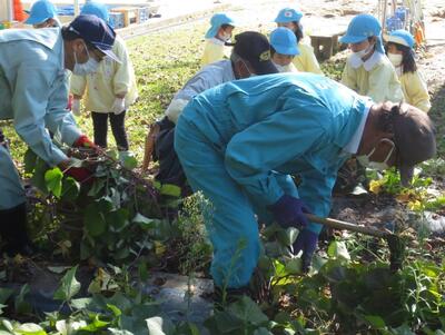 本日、毎年恒例の年長組のさつまいもを行いました。