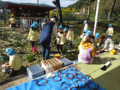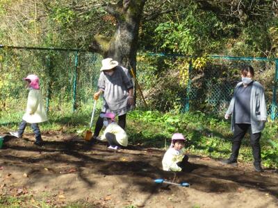 この活動に当たっては、昨年度もお世話になりましたボランティアの森内さんと星さんに今年も土づくりやマルチがけはじめ畑の状態を見ていただきま、助言をいただいていました。今日も、お2人と村社会福祉協議会の方々のサポートを受けながら芋ほりを進めました。