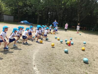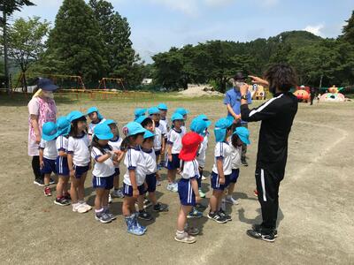 6/25(金)、本年度第2回目となるサッカー教室を年長・年中クラスで行いました。