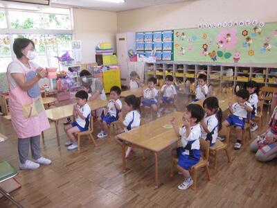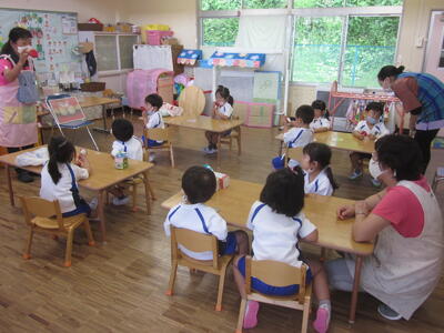 2021年6月28日 14時57分今日は、年少組で歯科教室を行いました。