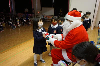 一人一人、ステージ上でサンタさんのプレゼントを受け取りうれしそう。