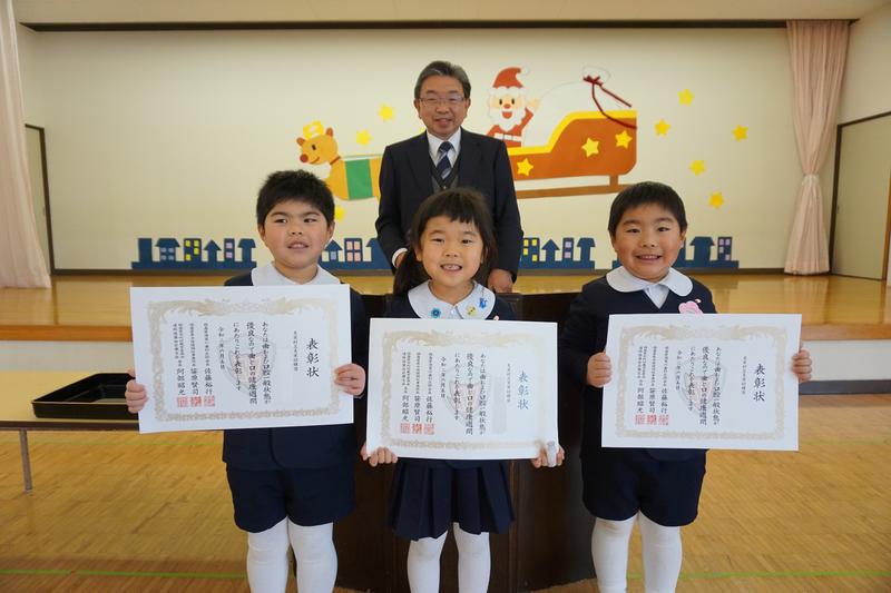 2020年12月23日 16時42分今年の歯科検診の結果、須賀川歯科医師会より3名の園児が表彰されました。