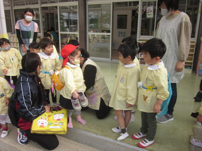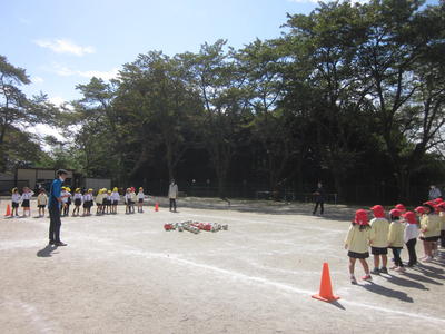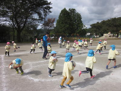1,2回目とも雨天だったので、園庭で行うのは初めて。