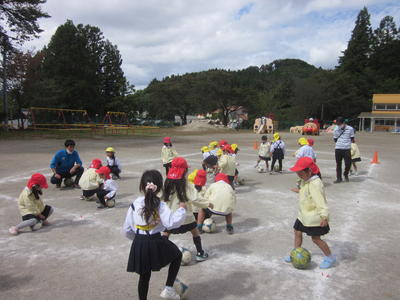 今回もビアンコーネよりコーチの指導のもと、湯本幼稚園のお友達とも一緒に楽しく活動しました。