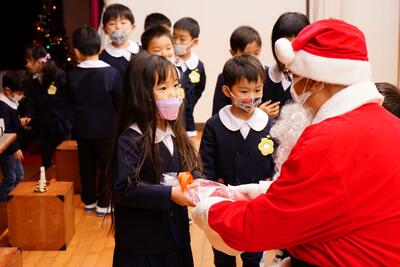 サンタさんに近づいていく際の子どもたちの表情が、とても愛らしく、素敵です。