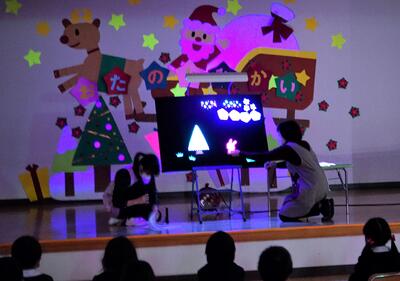 そのあとは、ブラックライトシアター「ほしのクリスマス」をみんなで鑑賞しました。とてもきれい~~。