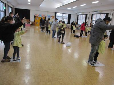 年中は、遊戯室で親子一緒に体をつかってお遊び。
