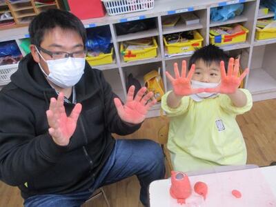 年長は、親子で紙粘土で卒園記念制作を前半、後半の2部制で行いました。