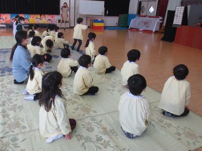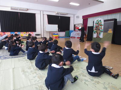 年少組は「わにさんのばんごはん」を、年中・年長組は「さるかに」を鑑賞しました。