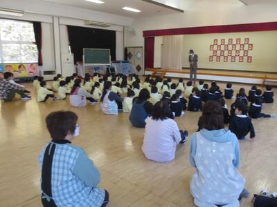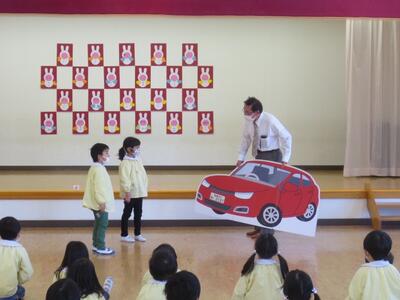 講師より、「お家の人のお話をよく聞くこと、車には気をつけること」のお話をいただいた後、命を守るお約束として、子どもたちにもおなじみの「いか・の・お・す・し」のお話をいただきました。