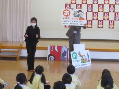 また、代表年長園児2名に協力してもらってロールプレイも行いました。