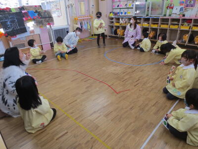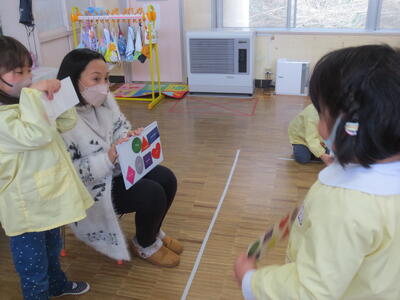 今日は、年中組で今年度最後となる英語教室を行いました。