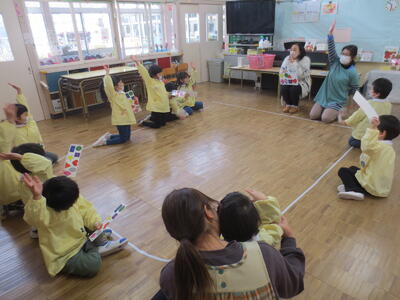 今日は年中組で今年度最後の英語教室。