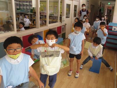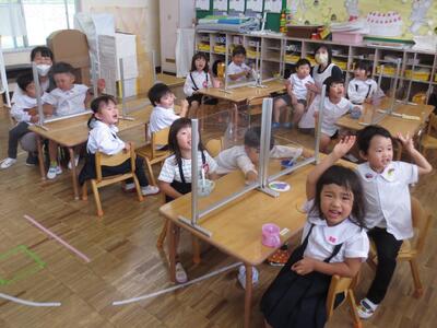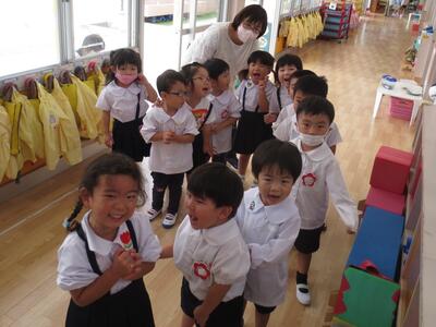 今日は、年少いちご組、年長ゆり組、年長ばら組からです。