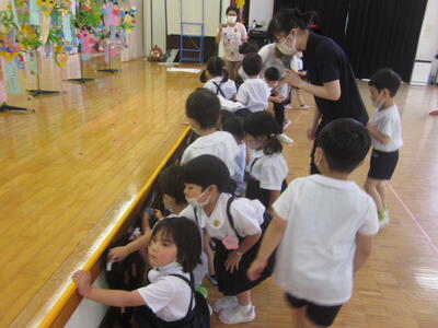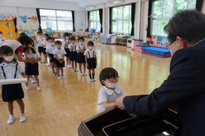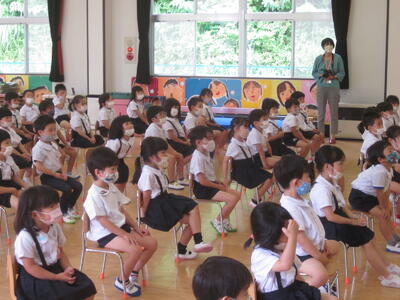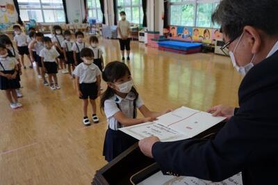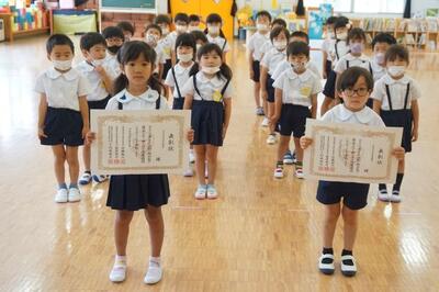 伝達式では、遊戯室に年長組全員が集合し、受賞をみんなで称えました。