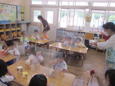 本日の給食で、またもや年長ばら組から給食「お残しなし」の報告がありました。