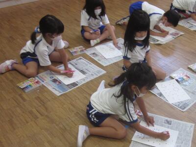 その後は、数字がついているドットを数字の順につなげて形を描き、それを英語表現しました。