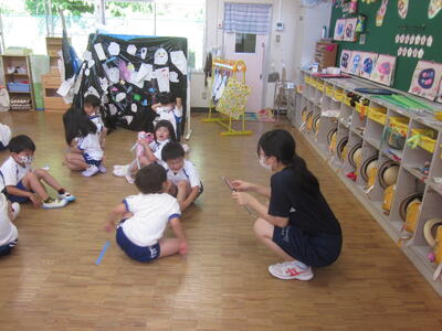 大勢の子どもたちに囲まれ、一緒に遊んだり、お昼を食べたり、紙芝居を読んで聞かせたりと、日頃できない体験をたくさんすることができたと思います。