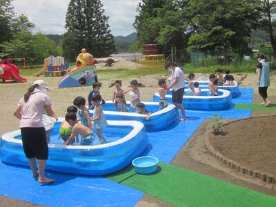子どもたちも、職員も待ちに待ったプール遊びです。