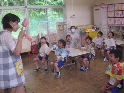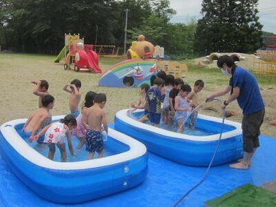 2022年6月28日 14時02分昨日歯科教室があった年長組は、今日からプールでの水遊びがスタートしました。