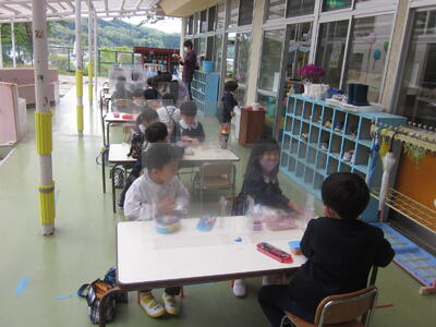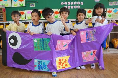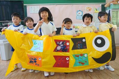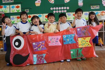 年長組で先週から製作をスタートさせたこいのぼりが今週完成。