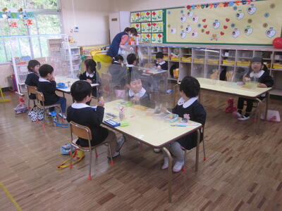 本日より、年少組も年長・年中組と同じく、通常の時間帯の降園となりました。