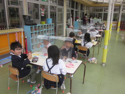 【年長組】 テラスでランチ。