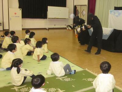 面白い場面で、子どもたちが一斉にずっこける姿が何度もありました。
