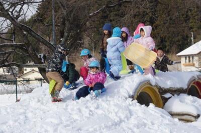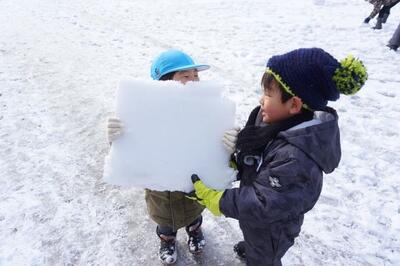 雪だるまをつくったり、築山を滑ったり、雪のプレートを見つけたり、雪合戦をしたり・・・。