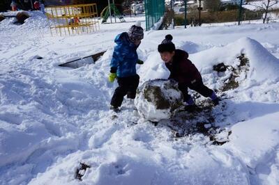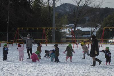 この時を逃すなとばかりに、各クラスから子どもたちが園庭に出てきて雪遊びがスタート。